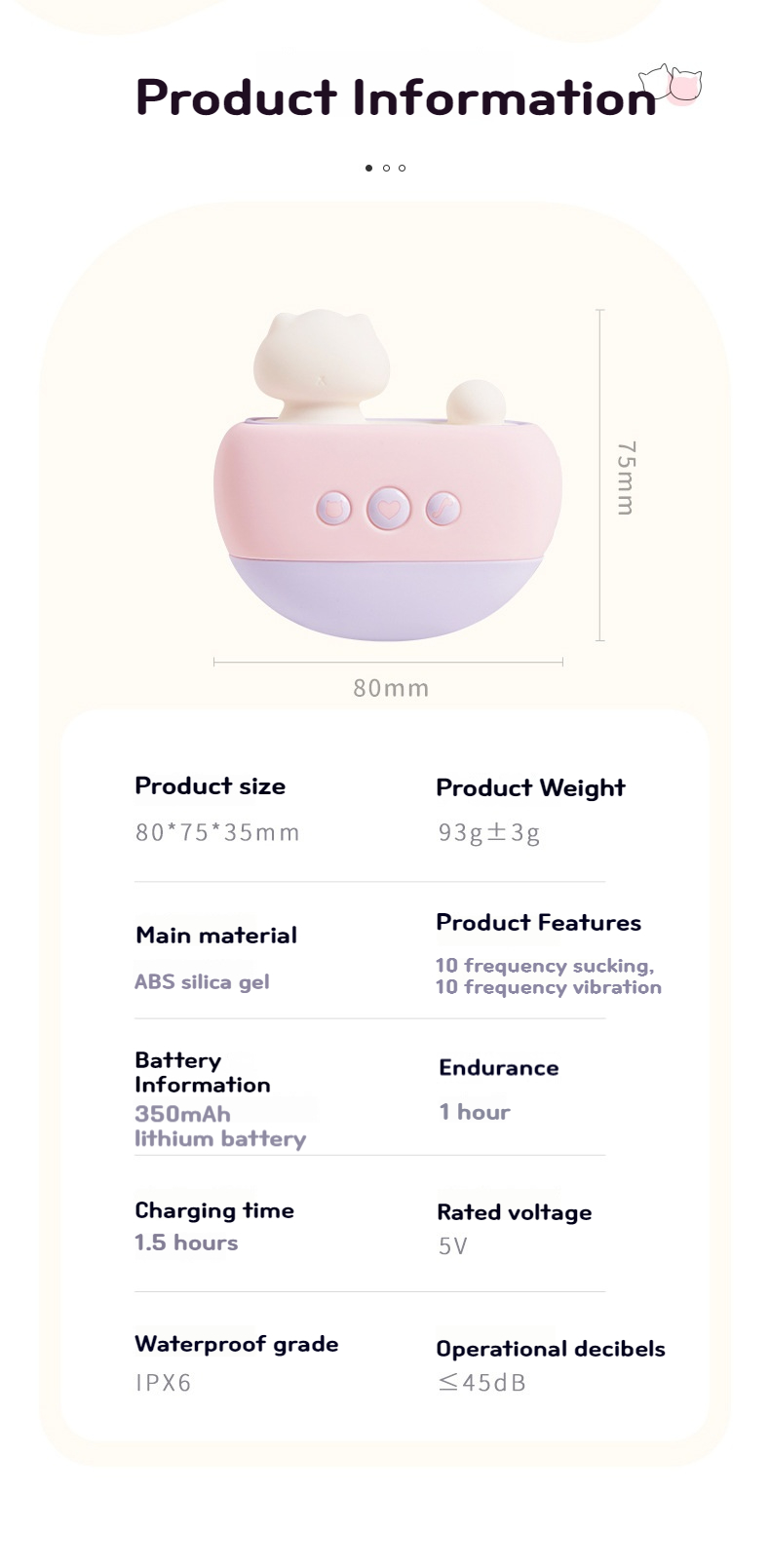 Popo cat vibrator + breast clip set, cleverly combines cute and funny styling with private fun.It is inspired by cute cats, and its exquisite appearance is like a fashionable decoration, which is easy to integrate into the home environment and provides excellent privacy protection.Innovative air suction technology, built-in 10 kinds of frequency conversion vibration modes, you can explore different levels of pleasant rhythm, as you like.The “one-click burst” function immediately reaches the climax more intensively pleasure.It is closely equipped with a safety locking function to effectively prevent accidental touches and make it safer to use. It is made of high-quality, soft, waxy silicone material, which feels silky and delicate. It has a professional level 6 waterproof design, not afraid of splashing water when bathing, easy to clean and maintain, and can enjoy the private time at will.