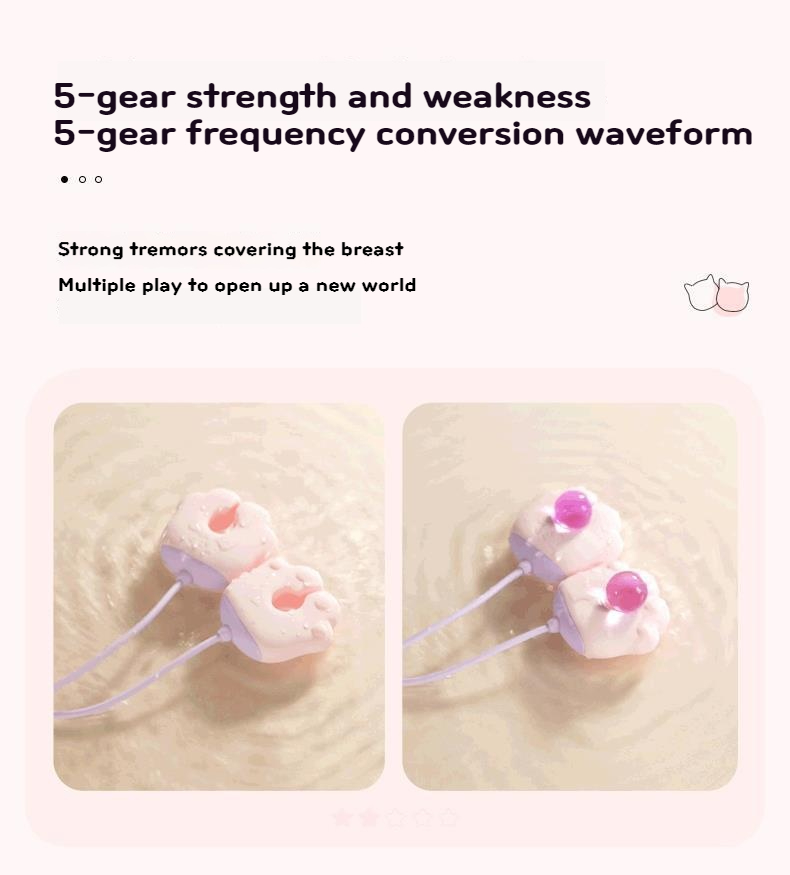 Popo cat vibrator + breast clip set, cleverly combines cute and funny styling with private fun.It is inspired by cute cats, and its exquisite appearance is like a fashionable decoration, which is easy to integrate into the home environment and provides excellent privacy protection.Innovative air suction technology, built-in 10 kinds of frequency conversion vibration modes, you can explore different levels of pleasant rhythm, as you like.The “one-click burst” function immediately reaches the climax more intensively pleasure.It is closely equipped with a safety locking function to effectively prevent accidental touches and make it safer to use. It is made of high-quality, soft, waxy silicone material, which feels silky and delicate. It has a professional level 6 waterproof design, not afraid of splashing water when bathing, easy to clean and maintain, and can enjoy the private time at will.